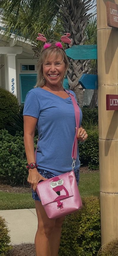 Of course, October also means Breast Cancer Awareness Month. I came across some pink leather and I couldn't resist playing around with it. The results? This beautiful flamingo bag. If you scroll over to the "you look fabulous" page, you'll find out more about this bag.