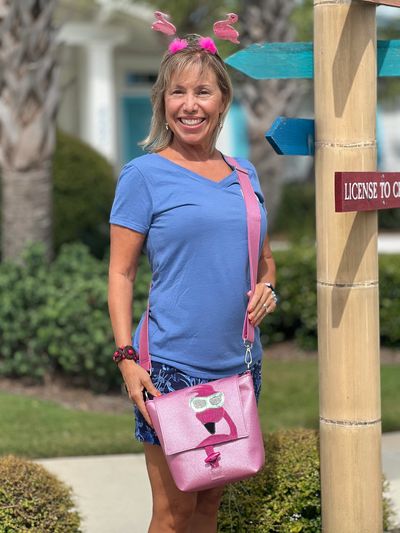 Jennifer picked the perfect bag-small, sleek, and so her!! The shoulder straps are one and a half inch wide, lined with pigskin underneath, so it's super comfortable to carry. The exterior is that beautiful pink leather that just turns heads, and the inside is lined with fused cotton-durable and classy!